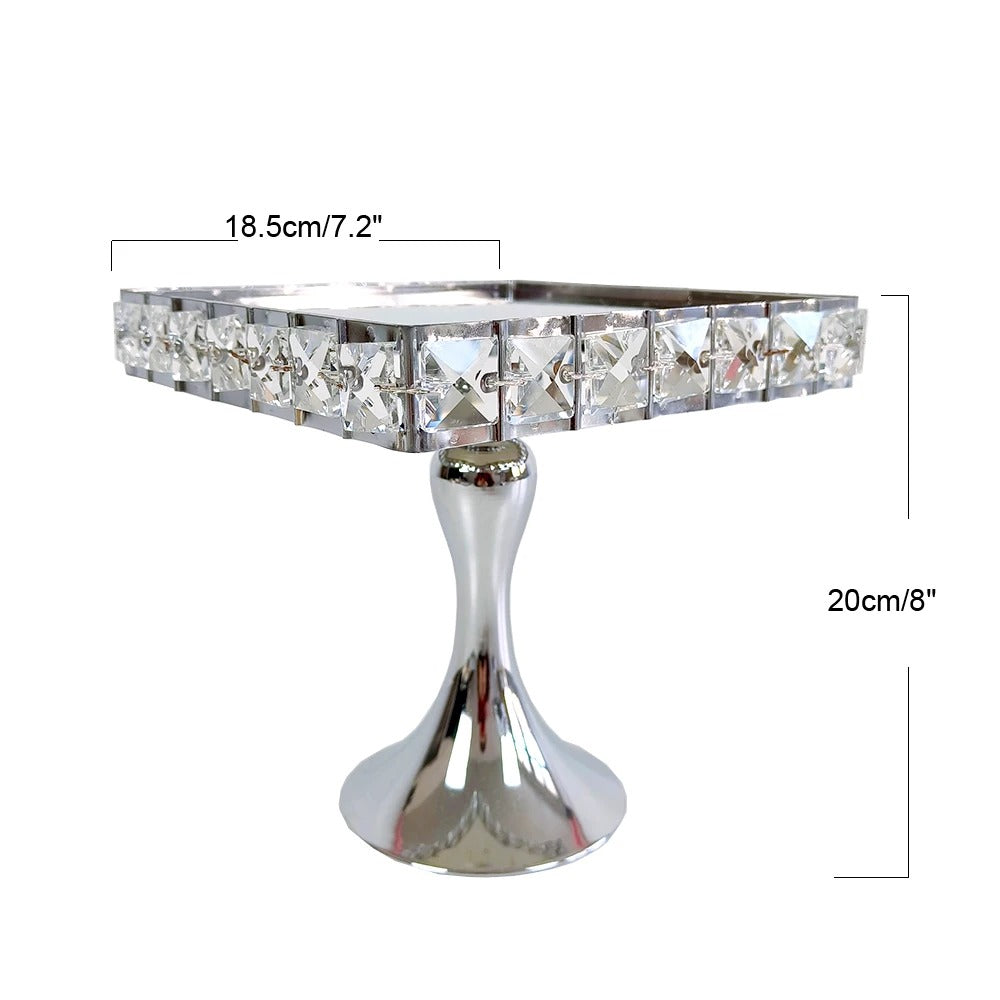 Présentoir Gâteau Carré Argenté avec Cristaux – L'Élégance Moderne pour Sublimer Vos Buffets