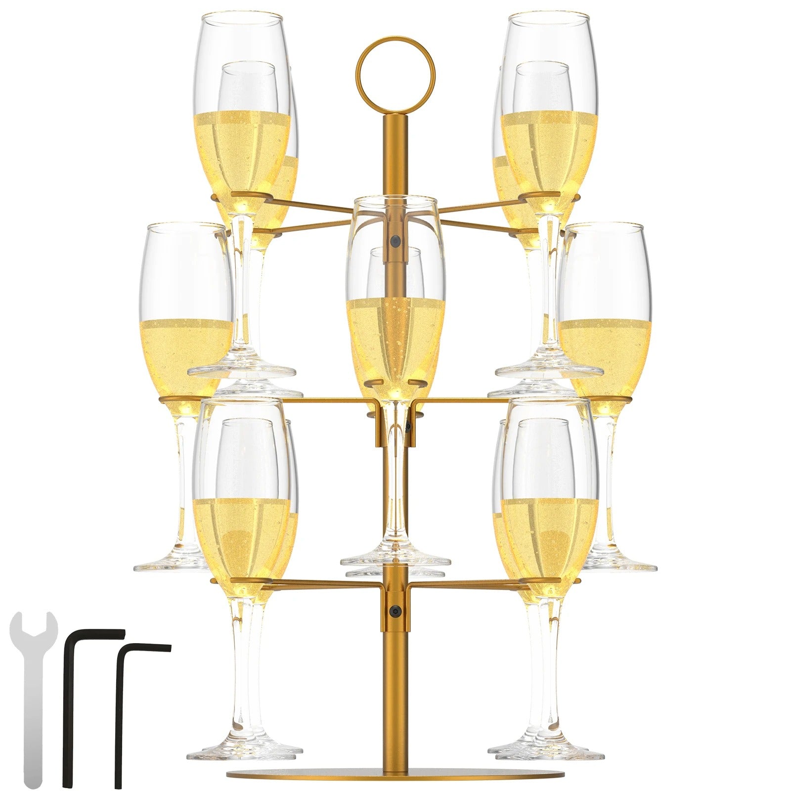 Ne laissez plus vos verres dispersés sur la table. Offrez-vous un support chic et pratique pour impressionner vos invités ! Disponible en noir ou doré, notre présentoir de verres à champagne est un incontournable pour une décoration réussie.