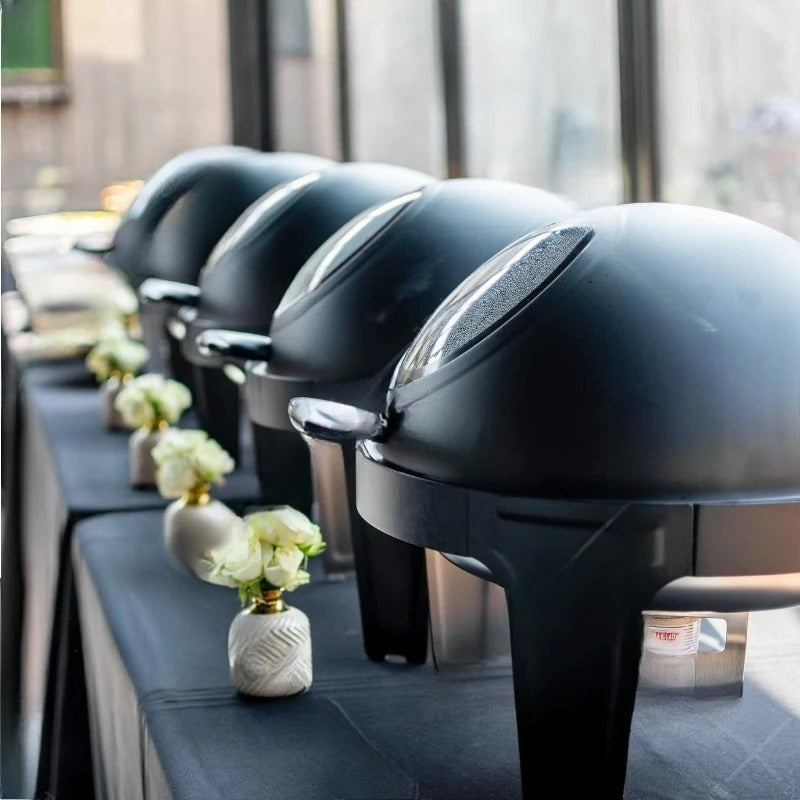 Chauffe-plat noir 6L avec couvercle dôme doré – Réchaud de buffet luxueux pour mariage, traiteur et événements premium