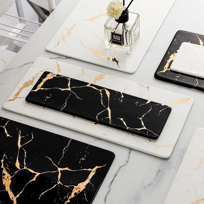 Le plateau rectangulaire marbre noir 28 cm est parfait pour :