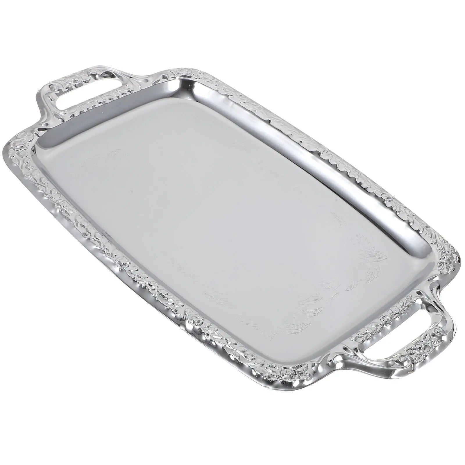 Plateau en Métal Argenté 39 x 23 cm – Plateau Chic Rétro avec Poignées pour Buffets, Service et Décoration