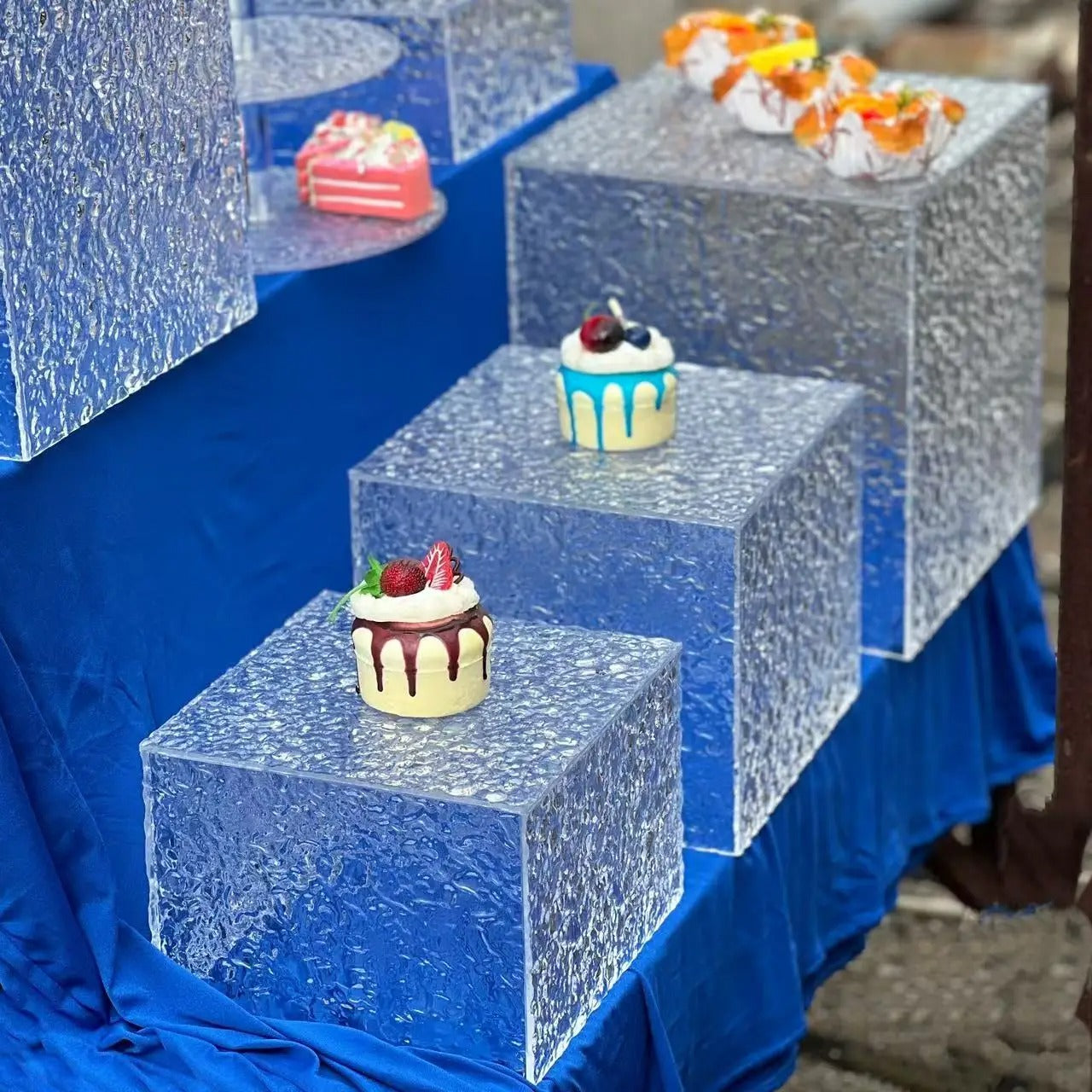 Son effet verre givré unique reflète la lumière et crée un rendu visuel spectaculaire, rappelant la transparence et la pureté de la glace. Idéal pour les mariages, anniversaires, réceptions d’entreprise, baby showers ou buffets de fête, ce présentoir effet glaçon met en valeur chaque détail avec élégance.